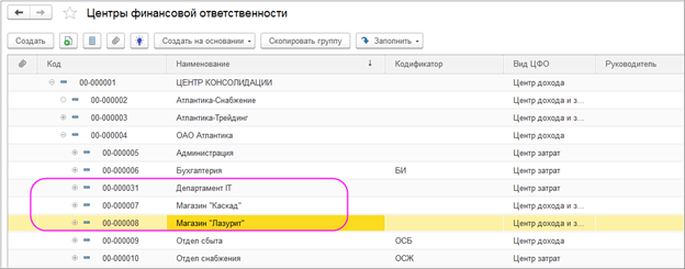 (функциональные центры ответственности) и ЦФО (центры финансовой