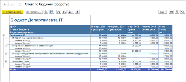 выступает Департамент IT, а Бюджетополучателем – к примеру, магазины компании.