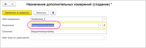 «Бюджетополучатель» и нажимаем «Записать и закрыть». Видим, что новая аналитика